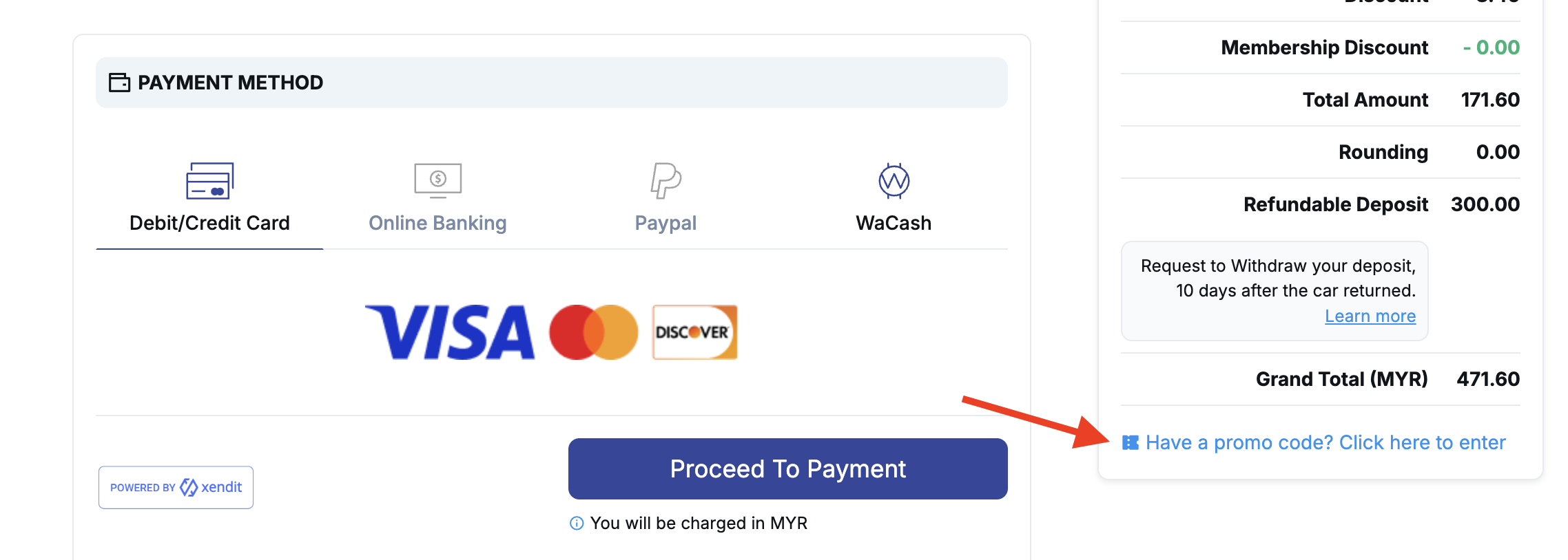 You can key in promo code before you proceed to make payment or select "PayLater" under the promo code section.