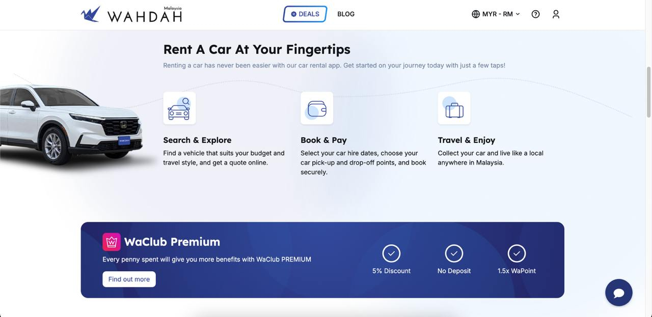 Select the "Join WaClub Premium" option on the booking page and remit the membership fee. The fee will be included in the total payment, resulting in an automatic 5% reduction in the car rental cost.